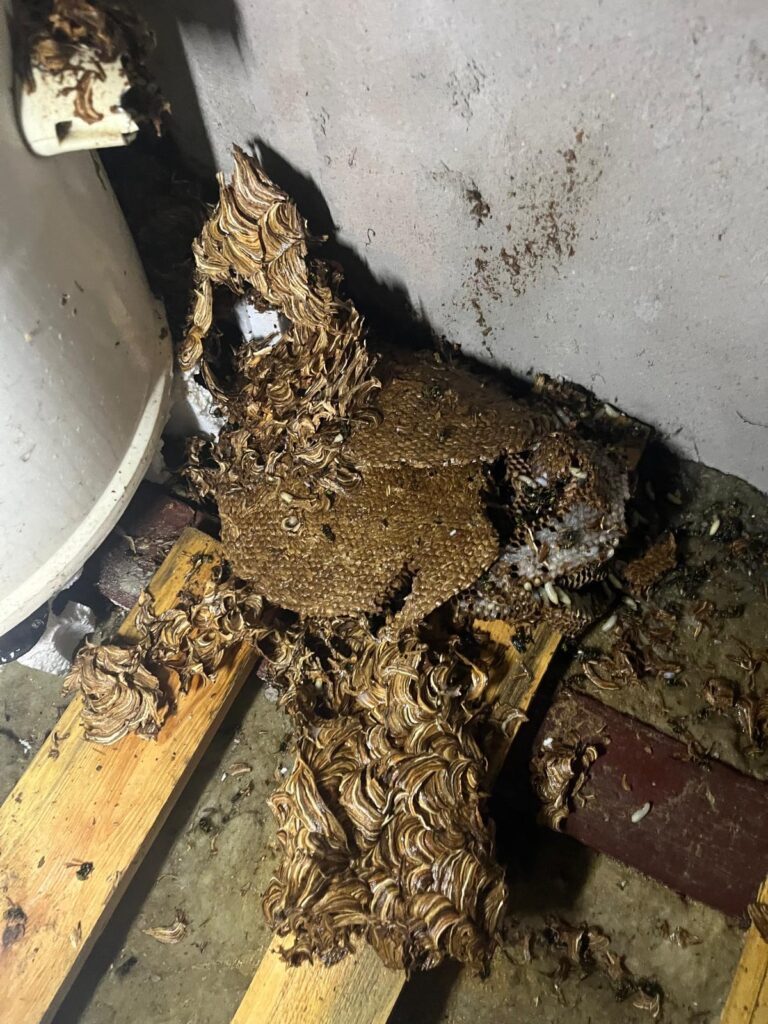 Tym razem duże gniazdo na poddaszu musiało zostać zlikwidowane, ponieważ zagrażało bezpieczeństwu mieszkańców.